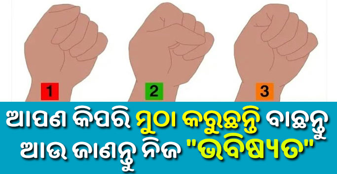 ବନ୍ଧୁଗଣ ନମସ୍କାର, ବନ୍ଧୁଗଣ ଆଜି ଆମେ ଆପଣ ମାନଙ୍କୁ ୩ଟି ମୁଠା ର ଚିତ୍ର ଦେଖାଇବୁ ଏବଂ ଏହି ୩ଟି ମୁଠାର ଚିତ୍ର ମଧ୍ୟ ରୁ ଆପଣ କରୁଥିବା ମୁଠା ଅନୁଯାୟୀ ଆପଣଂକୁ ଯେକୌଣସି ଗୋଟିଏ ମୁଠା କୁ ବାଛିବାକୁ ପଡ଼ିବ । ବନ୍ଧୁଗଣ ଏହି ମୁଠା ମଧ୍ୟରୁ ଆପଣ ଗୋଟିଏ ମୁଠା ବାଛିବା ପରେ ଆମେ ଆପଣଂକୁ ଆପଣ ବାଛିଥିବା ମୁଠା ଅନୁସାରେ ଆପଣଙ୍କ ର ଗୋଟିଏ ଖାସ କଥା ସମ୍ବନ୍ଧରେ ଜଣାଇବୁ । ତେବେ ବନ୍ଧୁଗଣ ଚିତ୍ରରେ ଥିବା ଏହି ୩ଟି ମୁଠା ମଧ୍ୟରୁ ଆପଣ ଯେ କୌଣସି ଗୋଟିଏ ମୁଠାକୁ ବାଛନ୍ତୁ । ଆଶା କରୁଛୁ ଆପଣ ନିଜ ଅନୁସାରେ କୌଣସି ଏକ ଗୋଟିଏ ମୁଠାର ଚିତ୍ରକୁ ବାଛି ନେଇଥିବେ ।